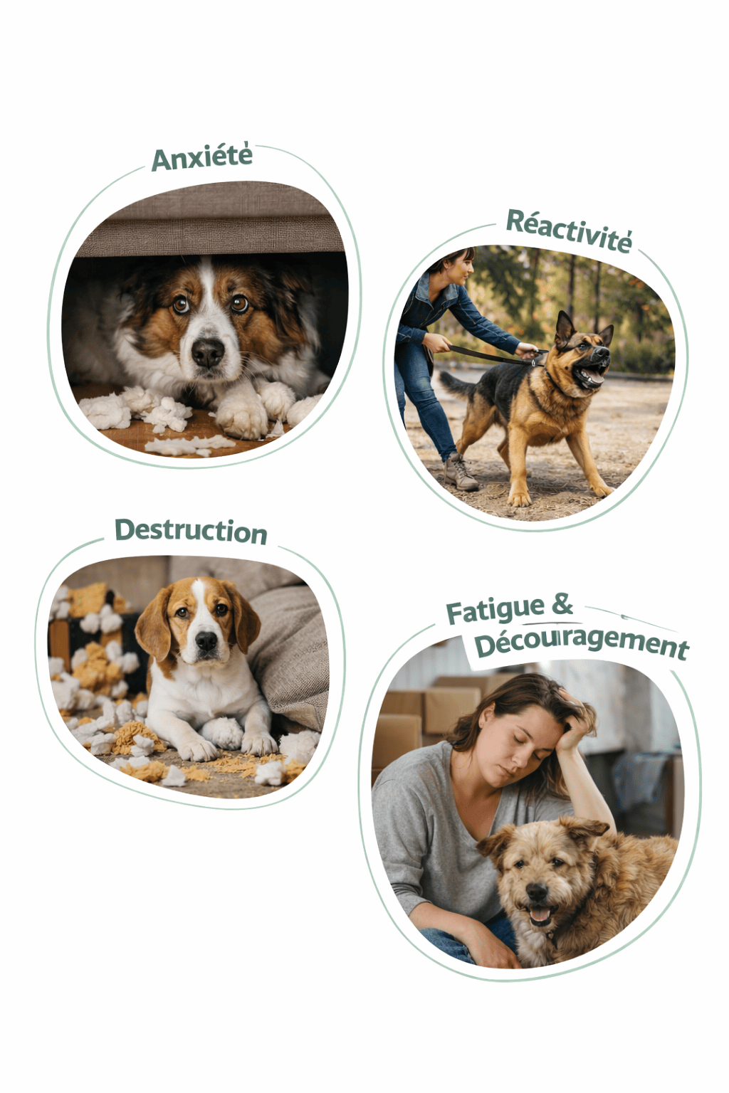 Plutôt que d’offrir des solutions génériques, je propose un accompagnement adapté aux enjeux réels que tu vis avec ton chien.